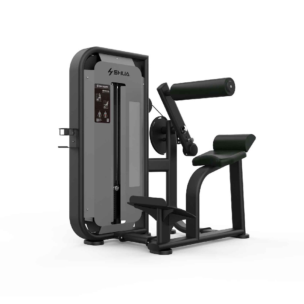 主要功能 锻炼竖脊肌1、阻力形式:配重块;总重90kg;最小调节重量5kg2、垫类(坐/背/胸/肘垫):坐垫高度不可调节;PU发泡成型3、最大人体承重:150kg4、主要管材规格:龙门架平椭150502.0mm,副架平椭120502.0mm5、牵索形式:日本进口钢丝绳;¢5.6mm6、轴承:人本轴承;62057、滑轮:尼龙加纤;¢117mm8、皮革类